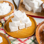 - Dust off the excess powdered sugar from the marshmallows and repeat until all the marshmallows are cut and coated.
